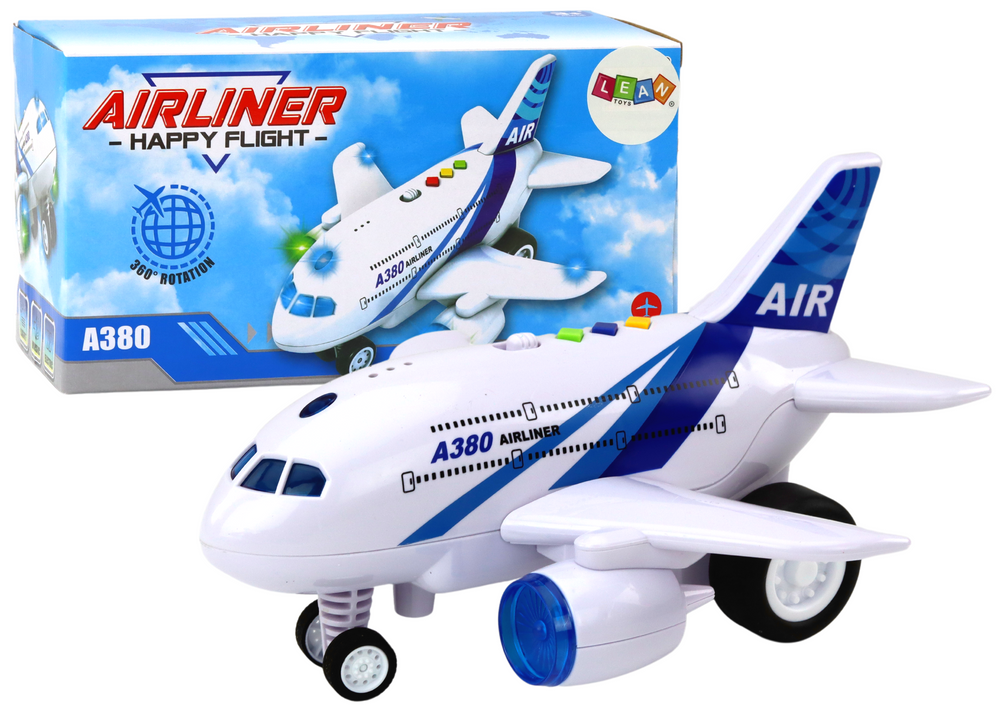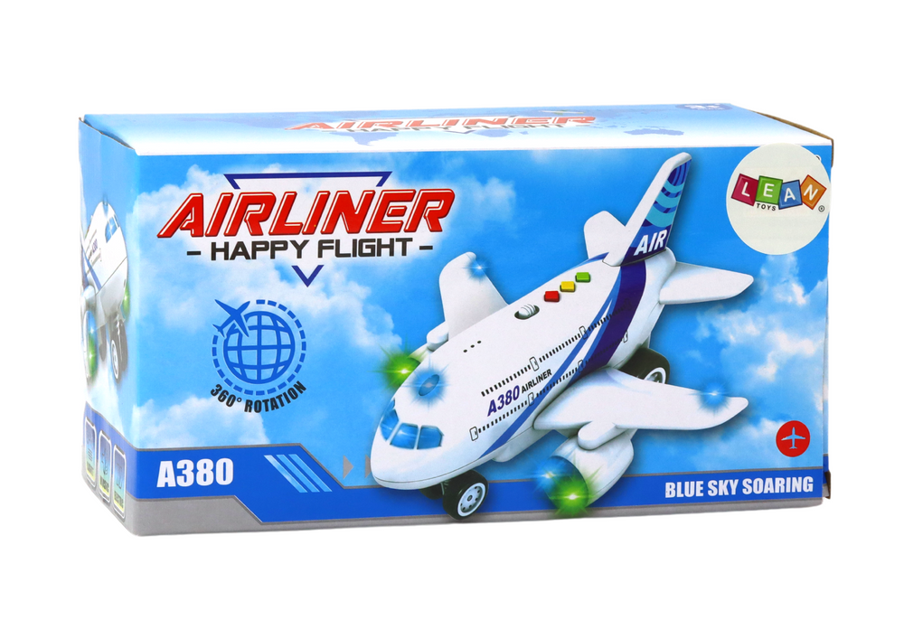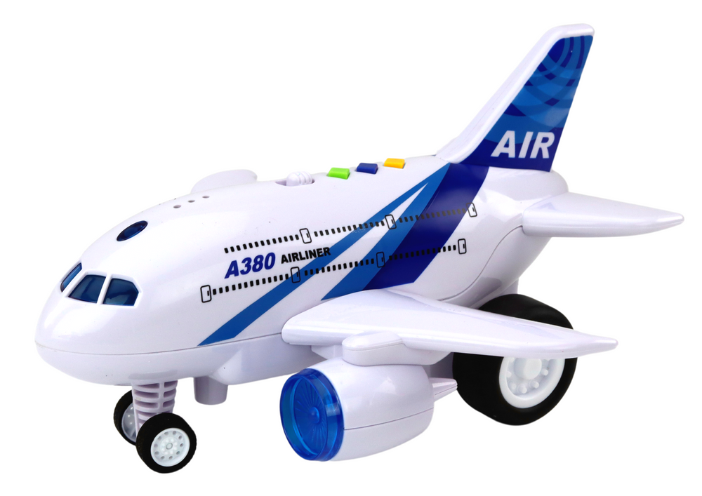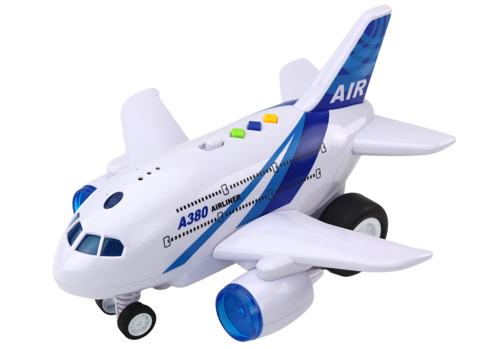 Samolot Pasażerski Jeżdżący Światła Dźwięki Biało-Niebieski