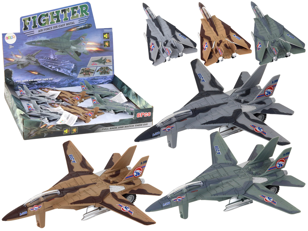 Zestaw zbiorczy obejmuje 6 samolotów, z których każdy występuje w trzech różnych wersjach kolorystycznych. Te warianty kolorów obejmują różne odcienie moro, co nadaje samolotom militarne i kamuflograficzne wykończenie. Dzięki temu dzieci mogą kreować różne scenariusze i misje, które pasują do danego otoczenia.