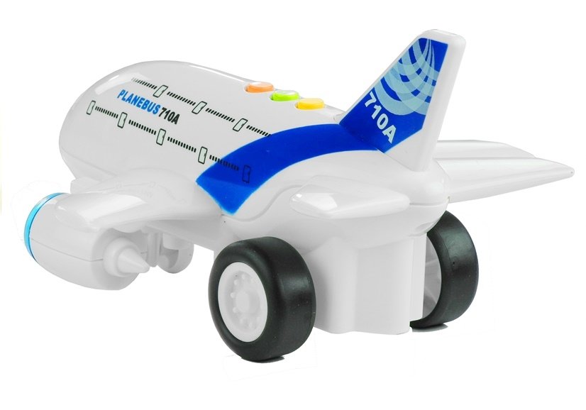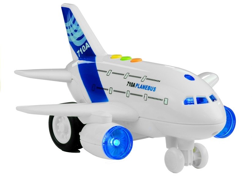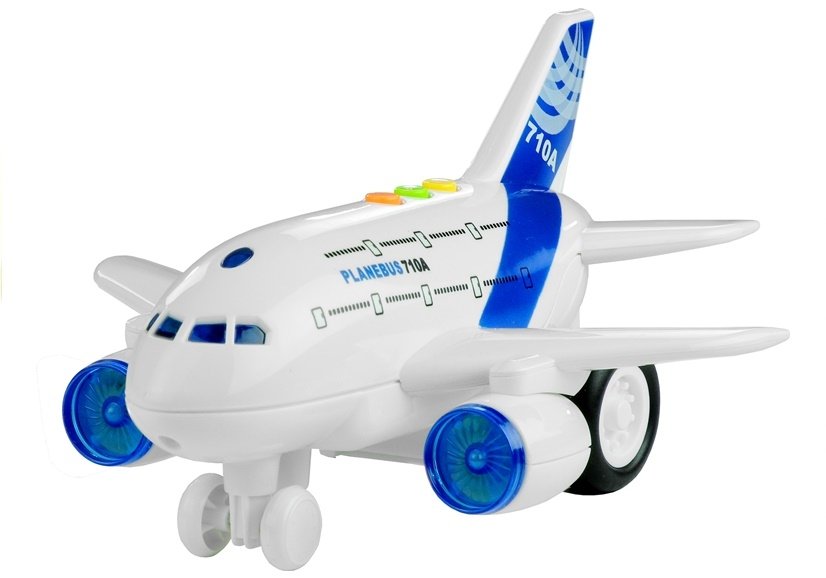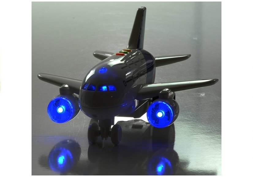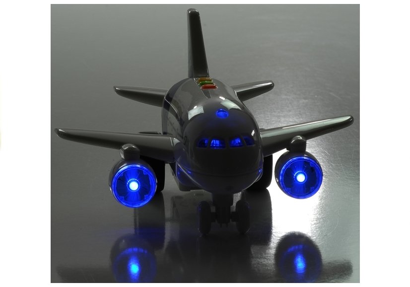 Dziecięcy samolot wyposażony jest w trzy różne guziki, aktywujące interesujące dźwięki i światła. Po naciśnięciu każdego z nich dziecko usłyszy komunikat w języku angielskim, który połączony jest ze spektakularnym efektem świetlnym. Zabawka wykonana jest w skali 1:200, co sprawia, że wygląda bardzo realnie, zachęcając do podjęcia zabawy.