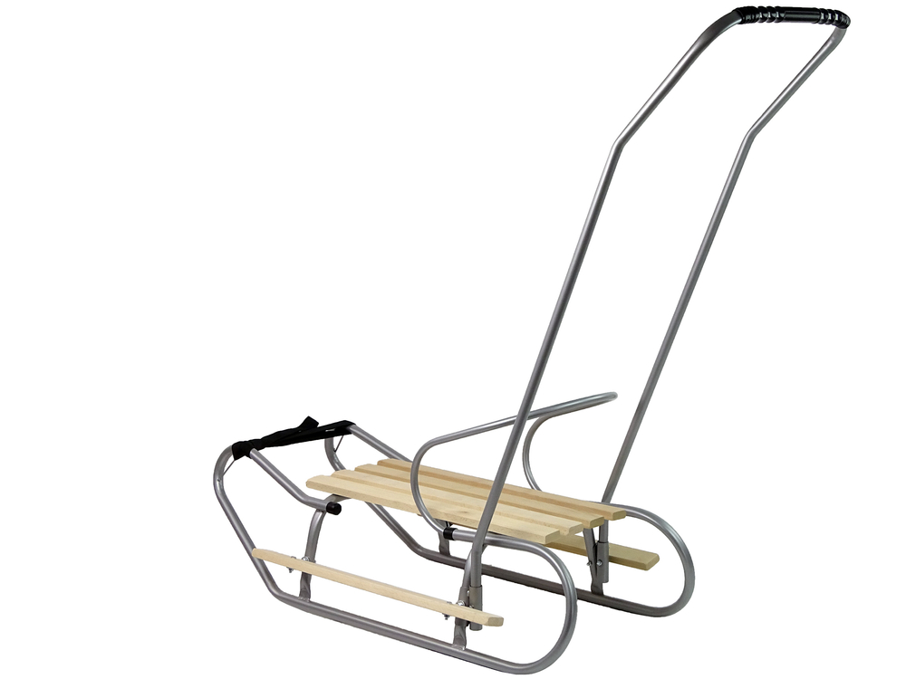 Mocny i szeroki pasek umożliwia ciągnięcie maluchów po śniegu. Oparcie sprawia, że z sanek korzystać mogą także najmłodsze dzieci, bez ryzyka wypadnięcia z nich. Sanki mają również pchacz, co stanowi dużą wygodę dla rodziców, który bez problemu może pchać sanki jak wózek. Duża wygoda podczas wspólnych zimowych spacerów z maluchem.