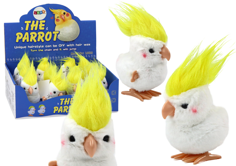 Urocze nakręcane papugi w kolorze białym z żółtą grzywą, które stanowią nie tylko zabawne elementy dekoracyjne, ale także idealne prezenty dla dzieci. Wykonane z wysokiej jakości materiałów, te urocze papużki są miękkie i przyjemne w dotyku, co sprawia, że są doskonałymi towarzyszami podczas zabawy.