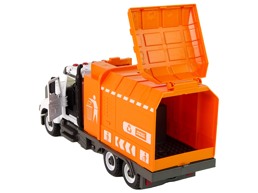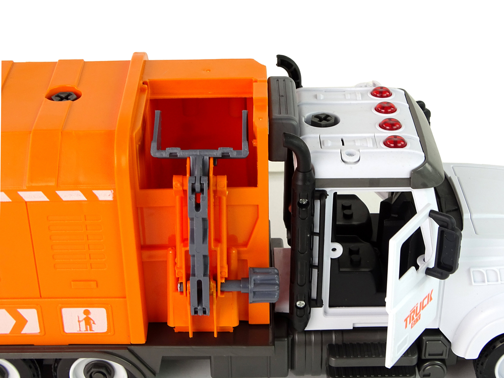 Ale to jeszcze nie wszystko! Śmieciarka jest wyposażona w 4 różne dźwięki oraz kolorowe światła, które można włączyć za pomocą czerwonych guzików na jej dachu. Dodają one realizmu i pozwalają maluchom poczuć się jak prawdziwi pracownicy zakładu utylizacji śmieci.