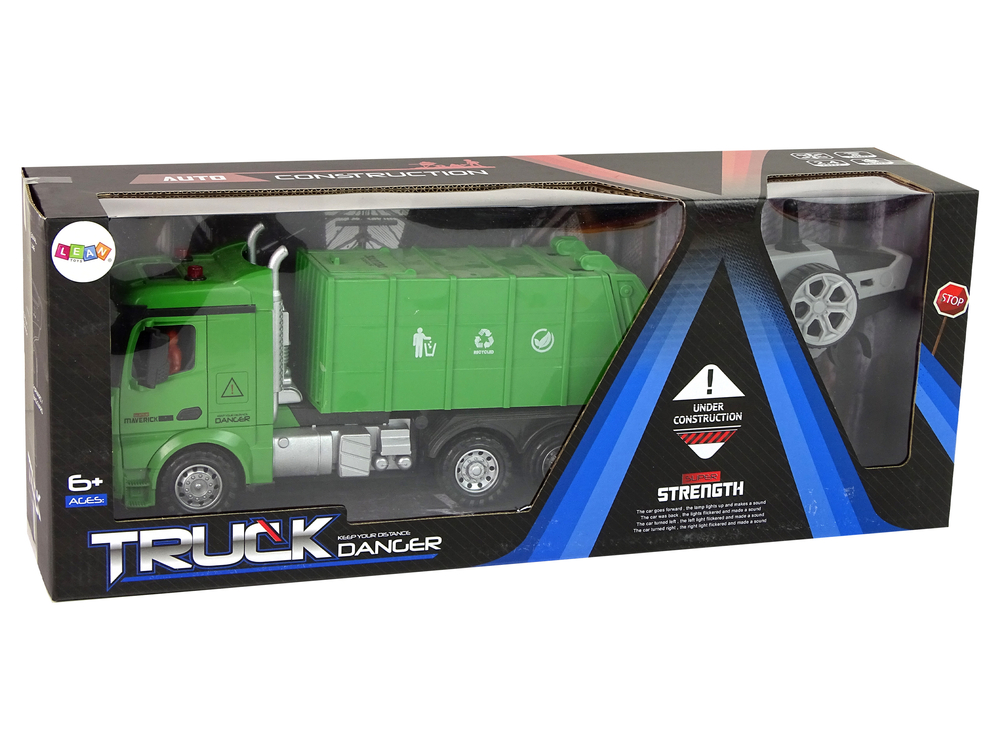 Śmieciarka Zdalnie Sterowana Zielona Pilot 2,4G Światła Dźwięk