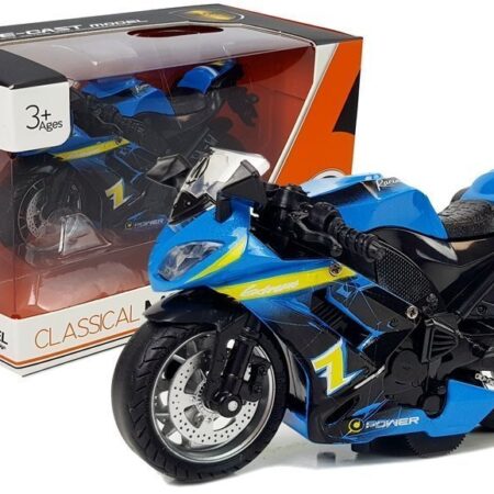 Małe pojazdy są najpopularniejszymi zabawkami, które uwielbiane są przez chłopców w każdym wieku. Służą przede wszystkim do zabawy oraz do kolekcjonowania. Nasz motocykl wykonany jest z trwałego materiału w skali 1:18. Model posiada funkcję dawania sygnałów dźwiękowych poprzez naciśnięcie na tylną część motoru oraz ruchomą kierownicę. Pojazd umieszczony jest na podstawce, którą można w każdej chwili odczepić od modelu. Dużą zaletą motocyklu jest pierwszorzędne wykonanie, na co składa się design uwzględniający najmniejsze szczegóły, dzięki czemu przyciągają wzrok każdego chłopca. Nasz model ma funkcję wprawienia w ruch. Wystarczy pociągną zabawkę po podłożu w tył i zacznie jechać.