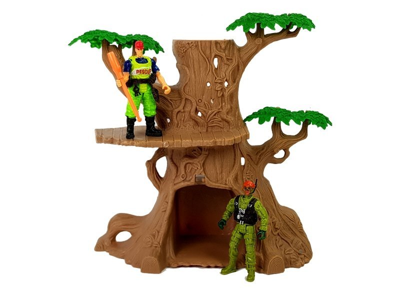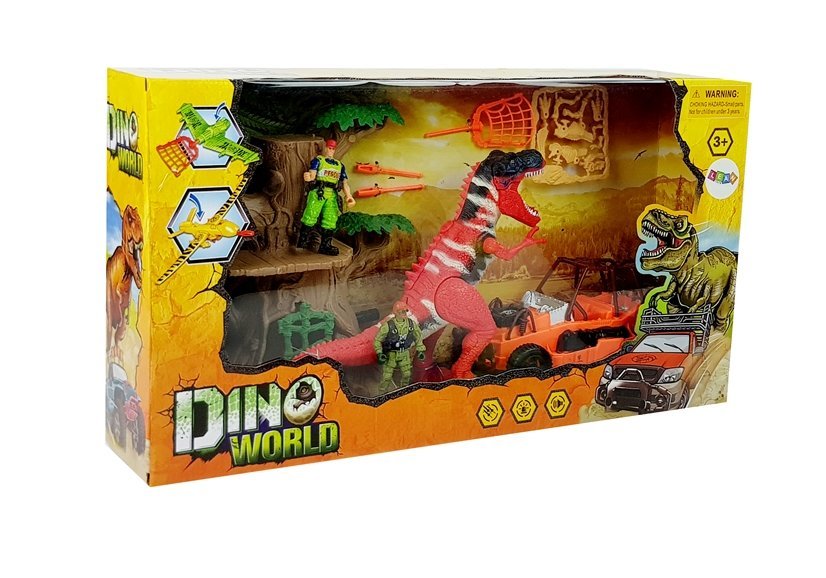 Dinozaur dołączony do zestawu, zasilany jest dwoma bateriami, wydaje dźwięki i oczy świecą diodami. Uruchamia się go, ruszając jedną z przednich nóg. Pojazd oraz pistolet z wyrzutnią umożliwia złapanie tego prehistorycznego gada. Baza do schronu zlokalizowana jest w dużym drzewie, na górze znajduje się ambona, gdzie można obserwować okolice.