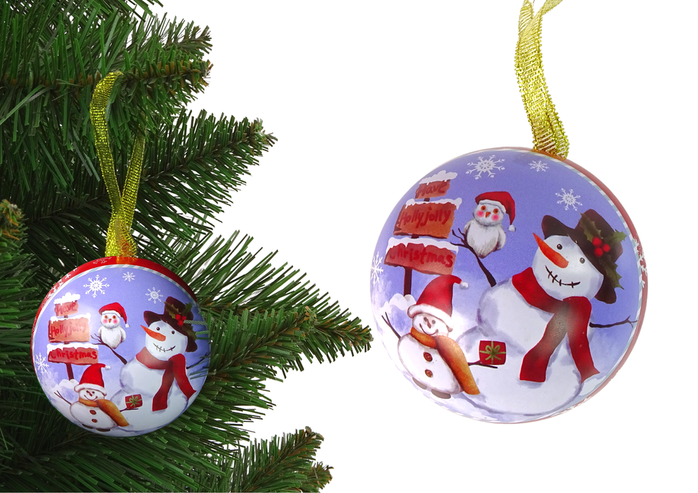 Świąteczna Bombka Metalowa Ozdoba Na Choinkę Bałwan Śnieg
