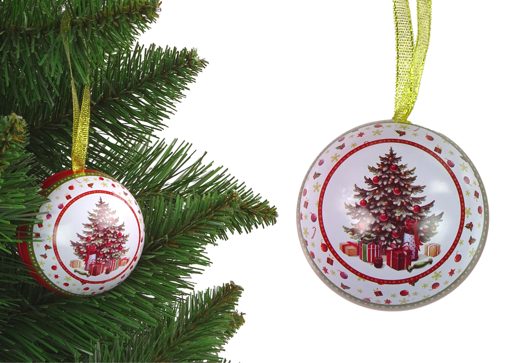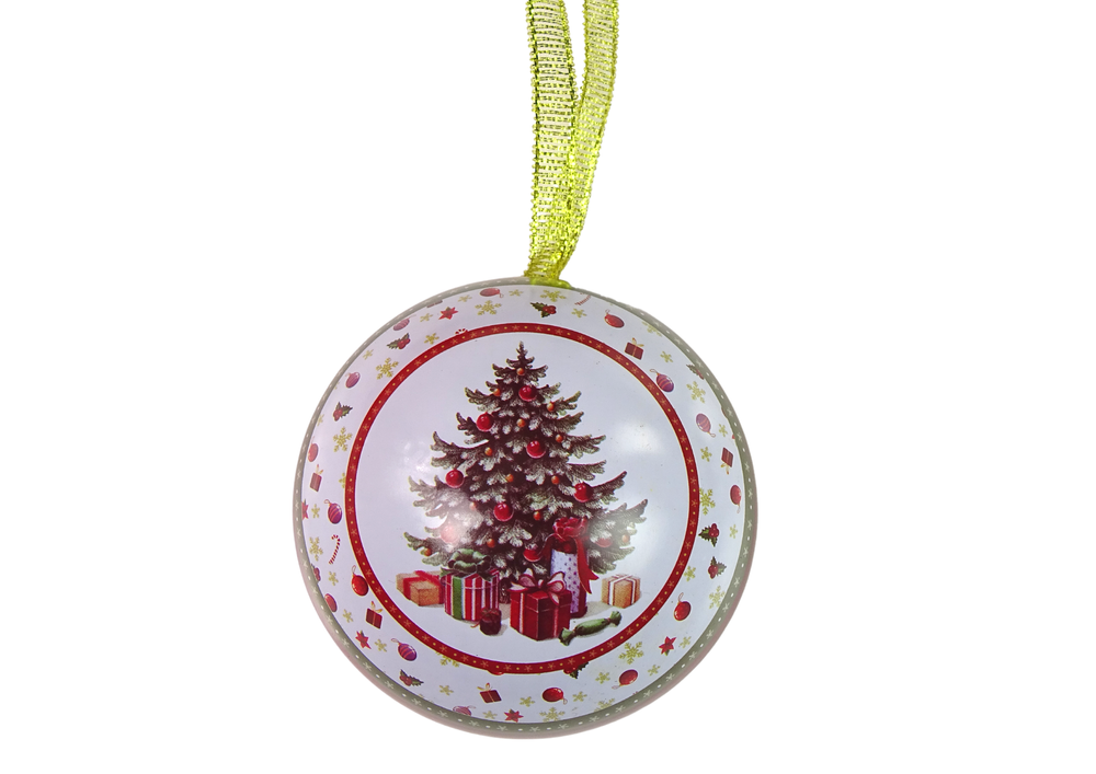 Świąteczna Bombka Metalowa Ozdoba Na Choinkę Choinka z Prezentami