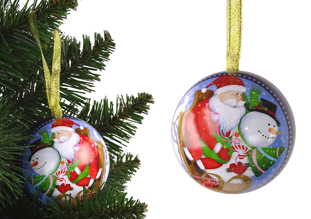 Przedstawiamy bombkę, która może stanowić także opakowanie dla prezentu znajdującego się w środku. Okrągła ozdoba otwierana jest na dwie połówki, a w środku posiadamy pustą przestrzeń, w której możemy schować słodycze bądź biżuterie. Sznureczek zamontowany w niej daje możliwość także zawieszenia na choince.