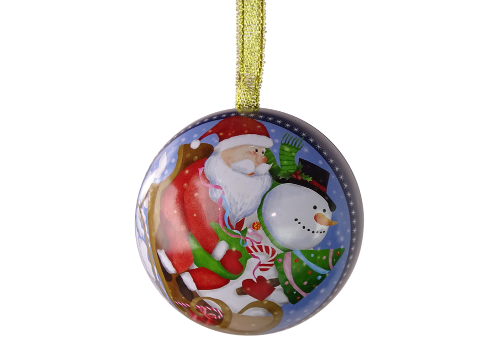 Świąteczna Bombka Metalowa Ozdoba Na Choinkę Mikołaj z Bałwanem Niebieska