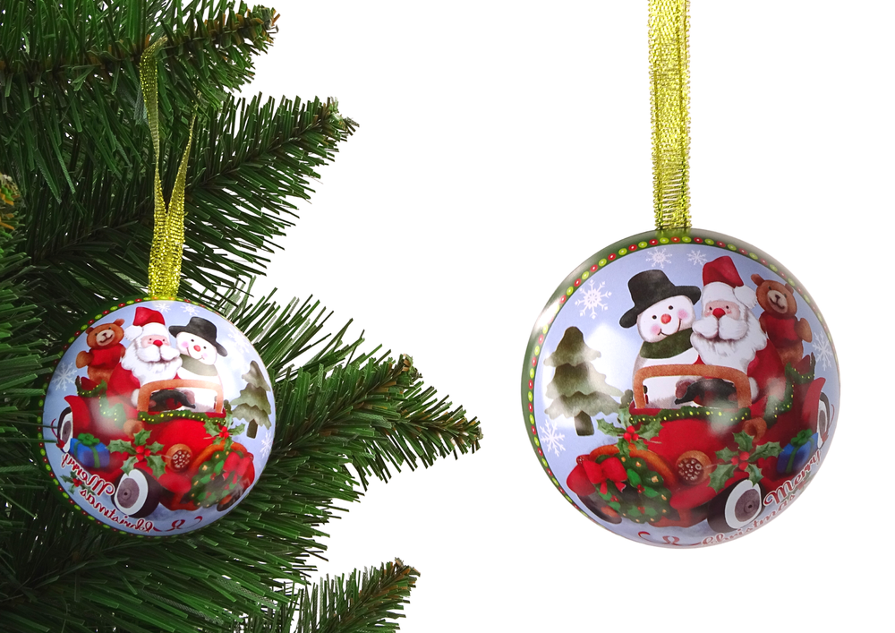 Przedstawiamy bombkę, która może stanowić także opakowanie dla prezentu znajdującego się w środku. Okrągła ozdoba otwierana jest na dwie połówki, a w środku posiadamy pustą przestrzeń, w której możemy schować słodycze bądź biżuterie. Sznureczek zamontowany w niej daje możliwość także zawieszenia na choince.