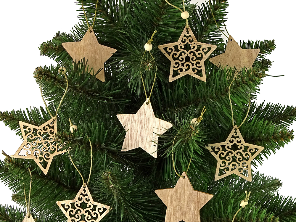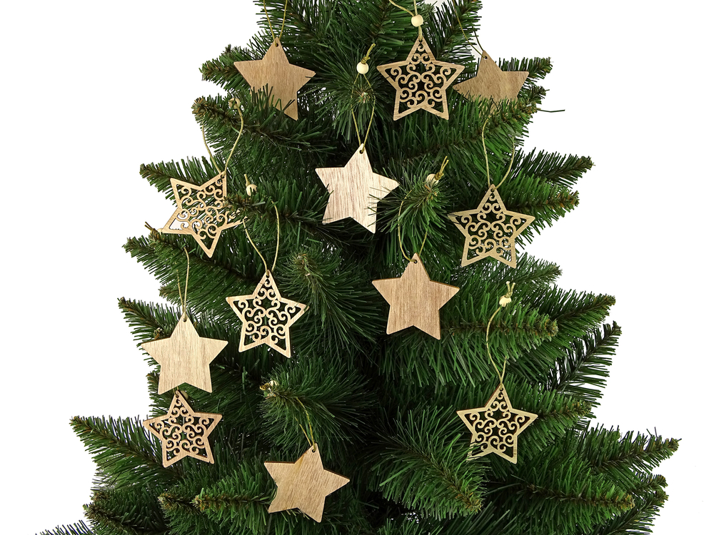 Świąteczne Bombki Drewniane Gwiazdy Gwiazdki Ozdoba Na Choinkę 12 Sztuk