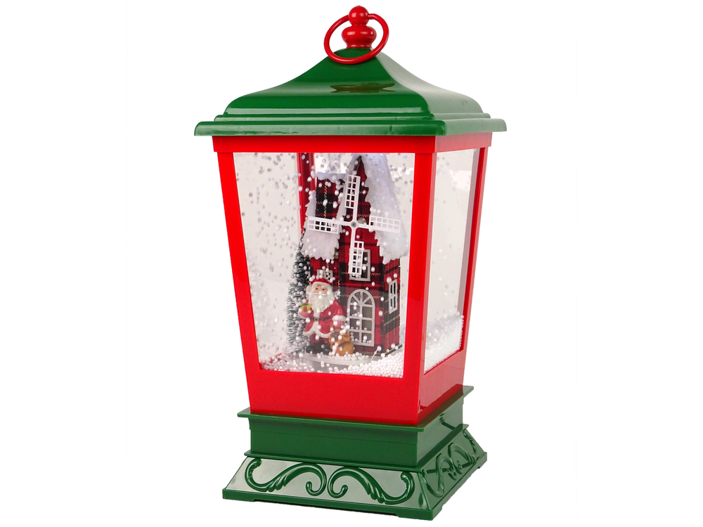 Świąteczny Lampion Światełka Sypiący Śnieg Czerwono- Zielona