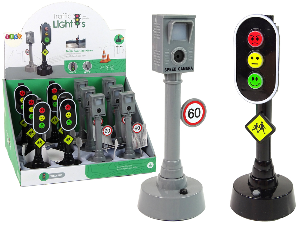 Światła drogowe są czarne, a na ich małych lampkach namalowane są minki, symbolizujące możliwość przejścia przez przejście dla pieszych (zła na czerwonym, oczekująca na żółtym, uśmiechnięta na zielonym świetle). Poprzez naciśnięcie guziczka włącza się światło. Fotoradar ze znakiem ograniczenia prędkości do 60 km, jest w kolorze szarym, posiada efekty świetlne i dźwiękowe, które imitują rzeczywiste robienie zdjęć.