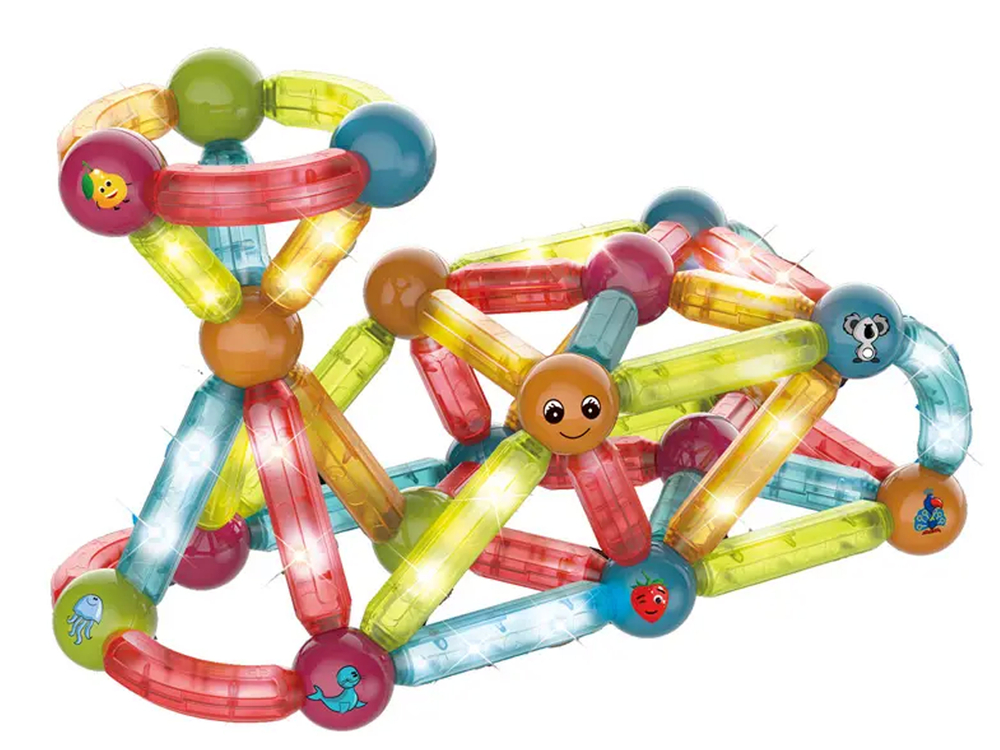 Świecące Klocki Magnetyczne Edukacyjne Zestaw 76 Elementów
