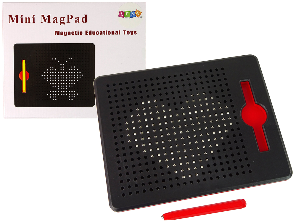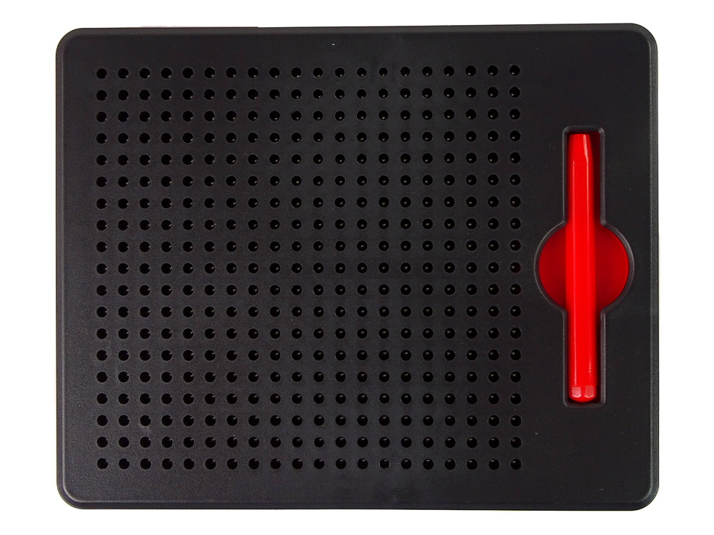 Każdy obrazek można łatwo ukryć. We wnętrzu zamkniętej tablicy znajdują kuleczki, a na powierzchni tablicy otwory. W trakcie przesuwania namagnesowaną końcówką pisaka po otworach kuleczki tworzą dzieło. Co zrobić, aby obrazek zniknął? Wystarczy płaską powierzchnią lub palcem przesunąć po rysunku, a kuleczki schowają się do środka.
