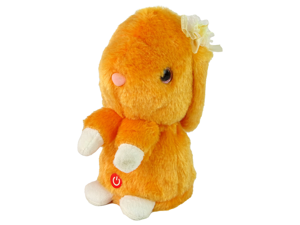 Króliczek jest zabawką interaktywną, która działa dzięki 3 bateriom 1.5V AAA (brak w zestawie). Po włożeniu baterii, włączeniu go przesuwnym przyciskiem i włączeniu z przodu, zaczyna grać radosną melodyjkę i tańczyć lub powtarzać dźwięki, które usłyszy od ciebie. To prawdziwie zabawny sposób na dostarczenie rozrywki i śmiechu maluchowi.