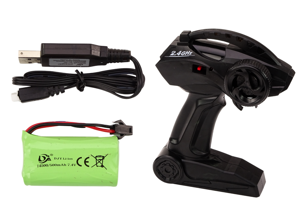 Auto zasilane jest na akumulator 3.7V, który jest elementem zestawu. Do akumulatora dołączona jest ładowarka.