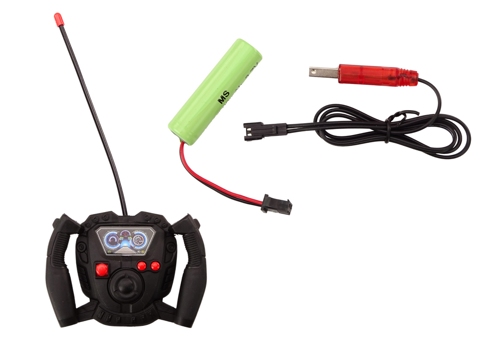 Traktor zasilany jest na akumulator 3.7V 500mAh, który jest elementem zestawu. Do akumulatora dołączona jest ładowarka.