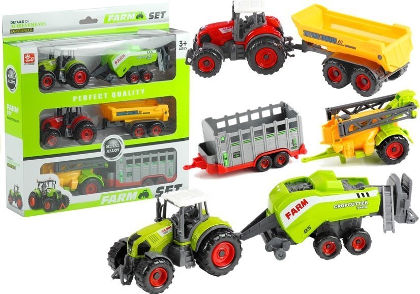 Prezentowany zestaw składa się z dwóch traktorów i czterech maszyn rolniczych, które przypominają miniatury prawdziwych pojazdów odwzorowanych w doskonale dobranych proporcjach. Twój maluch z łatwością połączy je ze sobą, tworząc dowolne kombinacje.