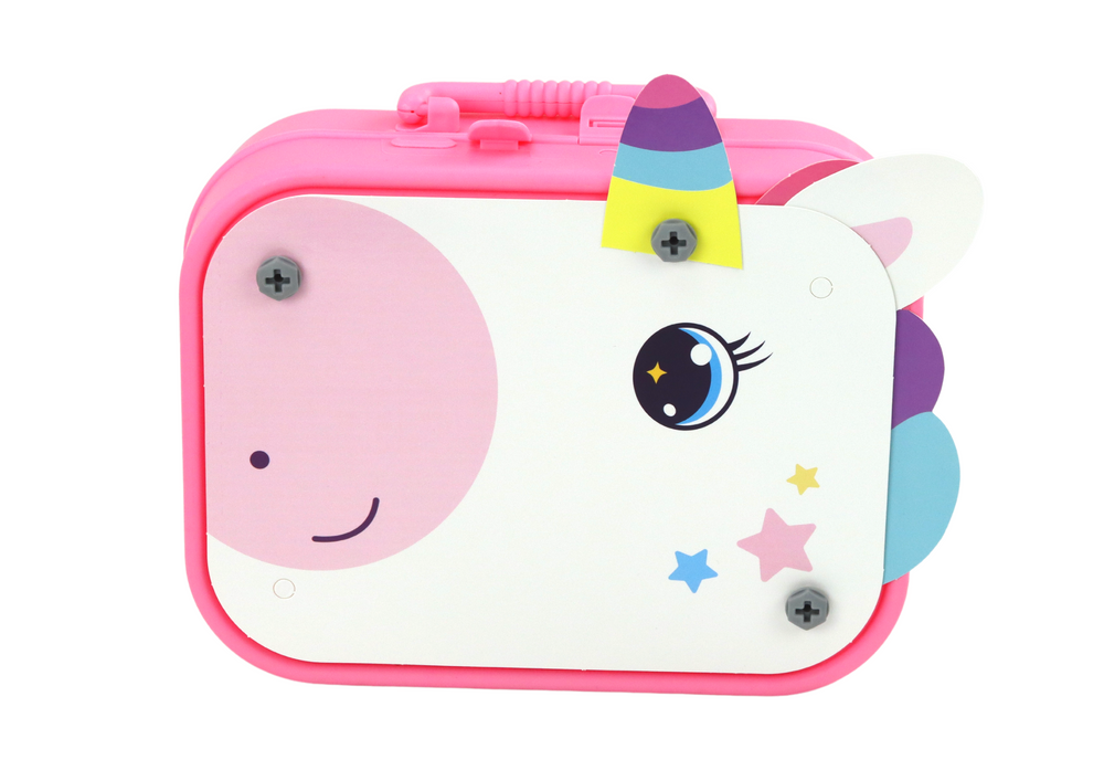 Zabawka walizka stolik DIY do skręcania z motywem jednorożca to magiczna przygoda dla każdej małej marzycielki! Głównym elementem tego zestawu jest urocza walizka, która nie tylko pełni funkcję przechowywania, ale również rozkłada się, tworząc stabilny stolik do zabawy.