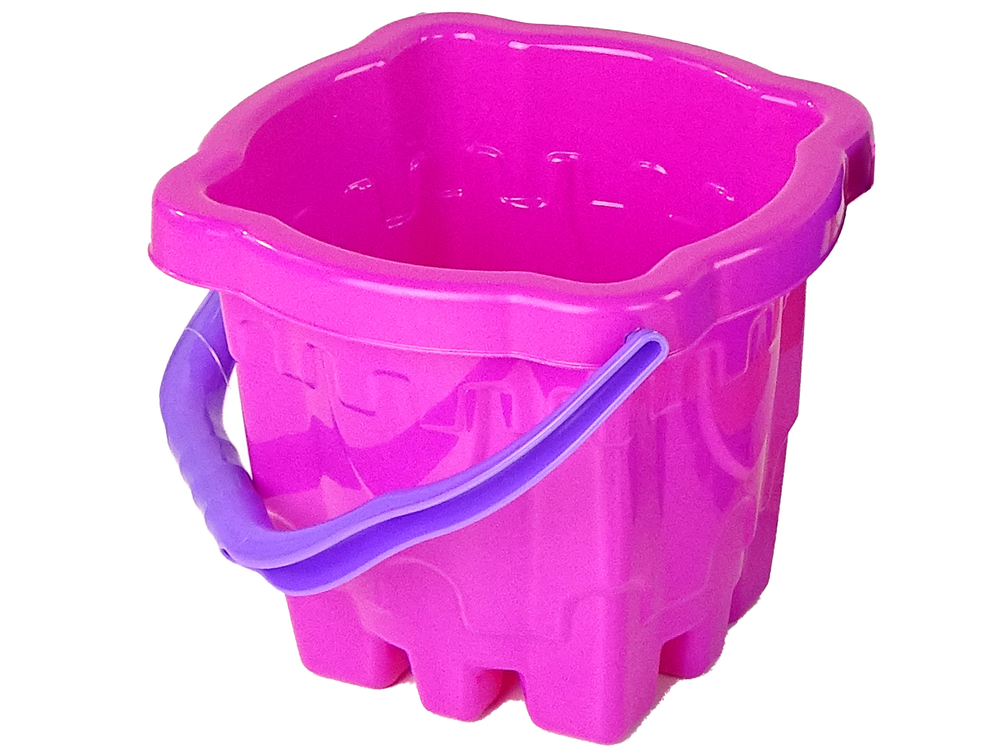 Przedstawiamy małe plastikowe wiaderko w kształcie zamku z uchwytem odpowiednie także dla najmniejszych dzieci, do piaskownicy.