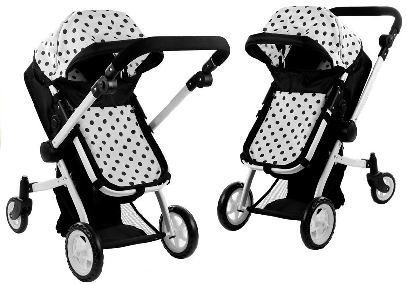 Głęboki wózek z funkcją spacerówki — biało-czarny w groszki