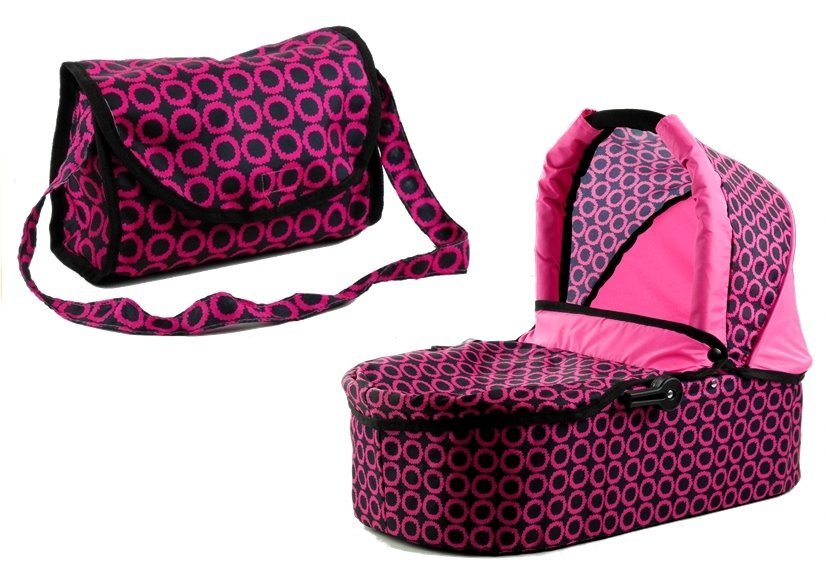 Wielofunkcyjny wózek dla lalek Alice — różowo-czarny w kółeczka
