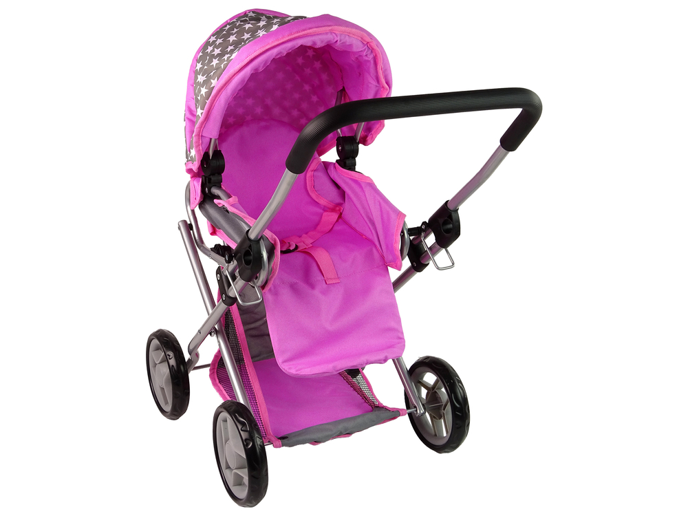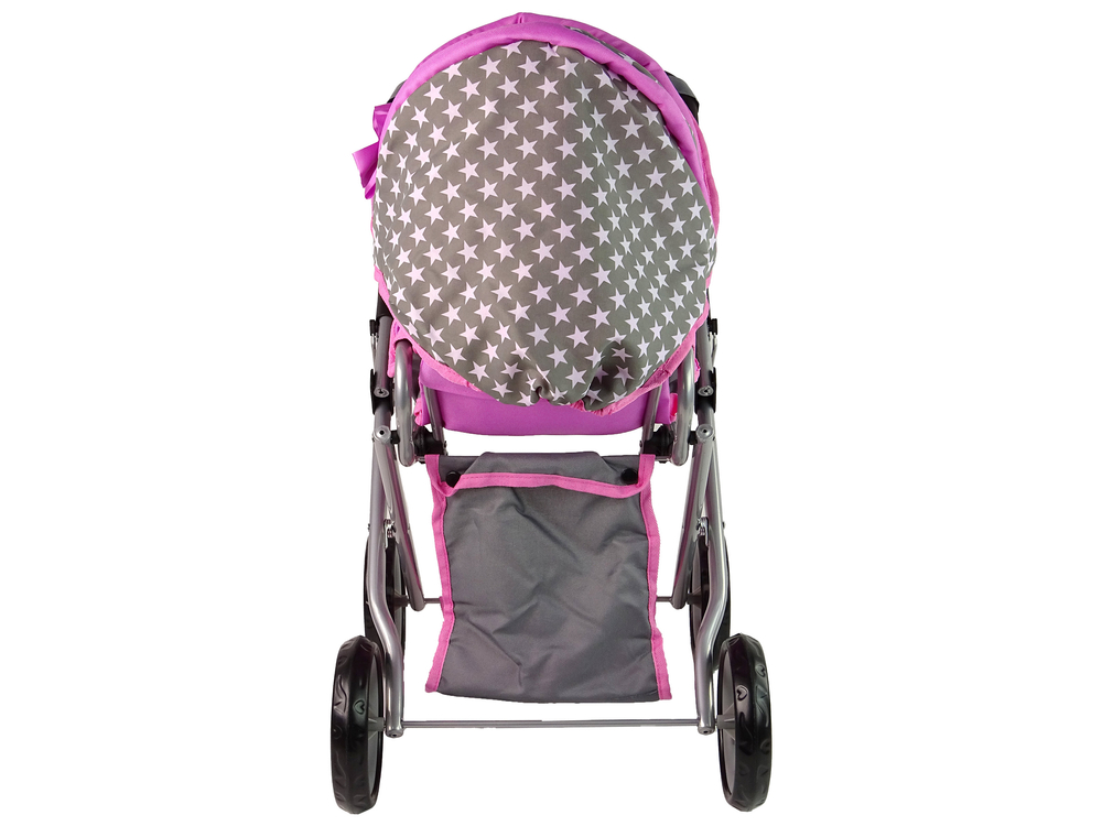 Wózek Dla Lalek Spacerówka 2 w 1 Torba Szaro Różowy Gwiazdki