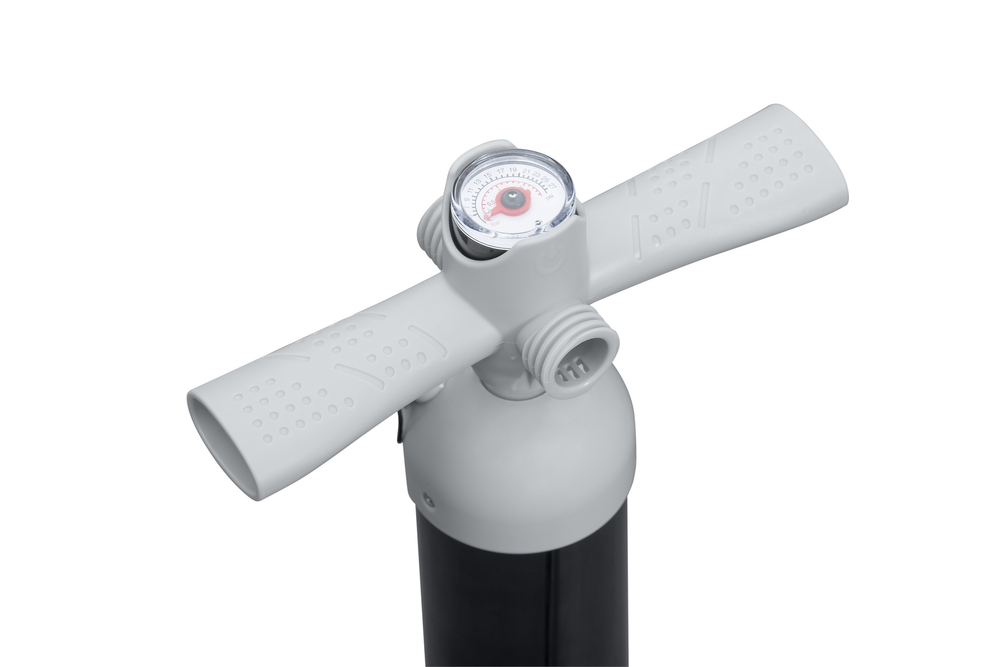 Wysokociśnieniowa pompka ręczna z manometrem Bestway pozwoli bez problemu napompować materace dmuchane, łóżka dmuchane, koła do pływania, pontony, deski SUP, piłki i inne, posiada aluminiowy tłok. Uchwyty z antypoślizgowym wykończeniem. Manometr z czytelnym wyświetlaczem. Do zestawu dołączono 5 różnych adapterów.