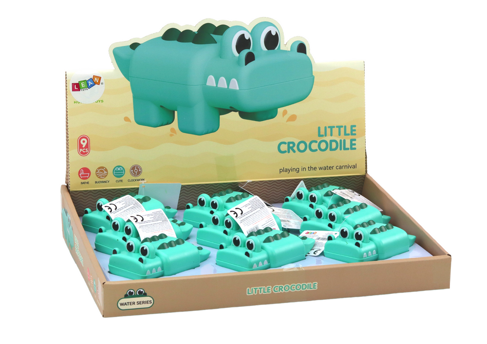 Wykonany z jasnozielonego plastiku, krokodyl wzbudza zainteresowanie swoim wyglądem i interaktywnością. Po nakręceniu mechanizmu, krokodyl zaczyna machać ogonkiem i sunąć po wodzie, wywołując u dzieci entuzjazm i uśmiech.