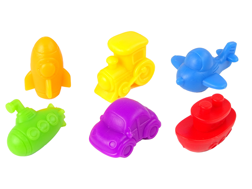 Twoje dziecko, dzięki zabawce nie tylko nauczy się liczenia, dodawania, ale i rozróżniania kolorów i kształtów. Wszystkie figurki wykonane są z twardej gumy, małe i poręczne.