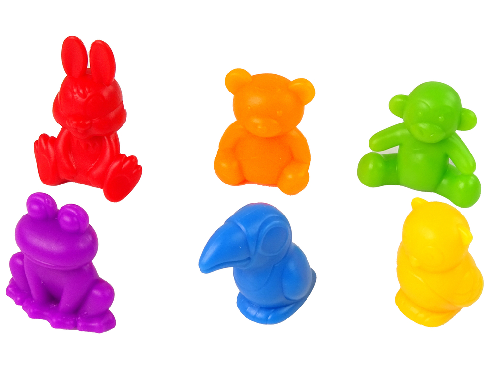 Twoje dziecko, dzięki zabawce nie tylko nauczy się liczenia, dodawania, ale i rozróżniania kolorów i kształtów. Wszystkie figurki wykonane są z twardej gumy, małe i poręczne.