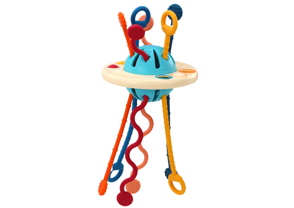 Zabawka Sensoryczna w postaci statku kosmicznego to niezwykła propozycja, która angażuje zmysły i rozwija zdolności motoryczne najmłodszych. Z łatwą do chwytania konstrukcją i teksturą sznurków oraz zakończeń, nawet maluchy mogą pewnie manipulować nimi. Ciągnięcie za sznurek i przeciąganie go przez pętlę dostarcza długotrwałej i zajmującej zabawy.