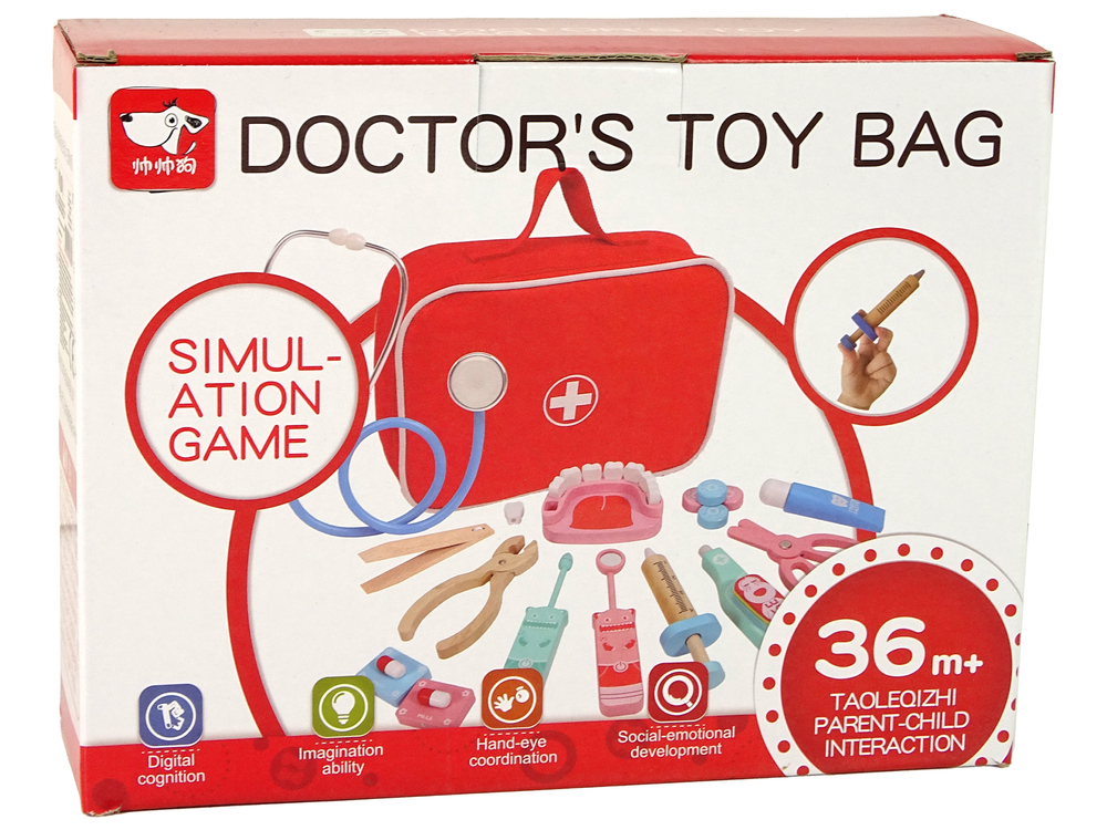 Zabawkowy Drewniany Zestaw Pierwszej Pomocy Lekarz