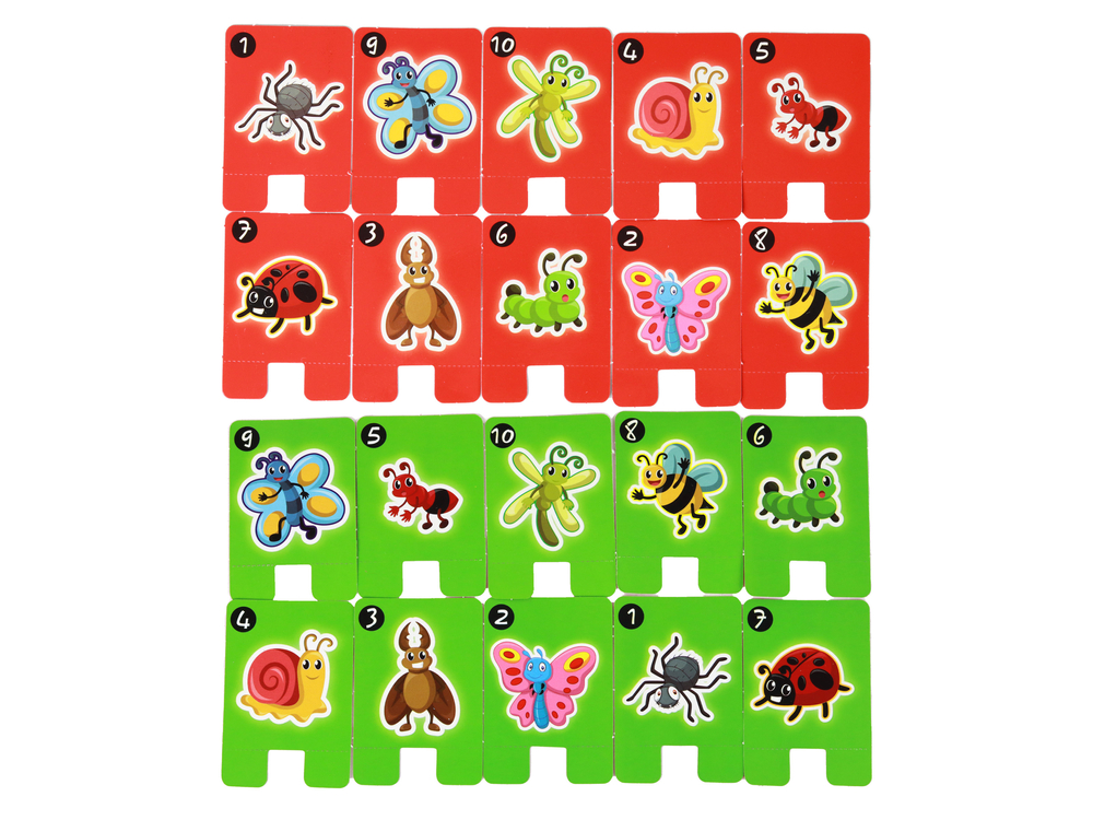 Dla ułatwienia gry – robaczki można ustawić po kolei – tak aby cyferki naturalnie wzrastały. Dla utrudnienia gry – robaczki można wymieszać.