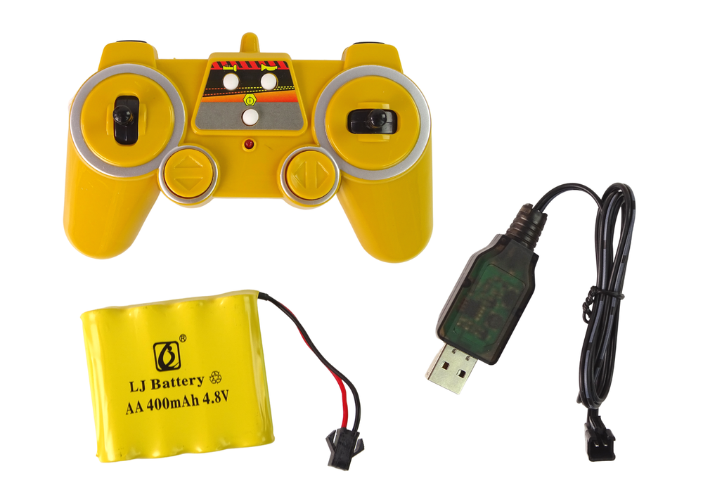 Gwarantuje to zarówno bezpieczeństwo i komfort użytkowania, jak i solidność pojazdu. By móc korzystać ze wszystkich funkcji zdalnie sterowanej zabawki, należy umieścić 2 sztuki baterii AA w pilocie (brak w zestawie) oraz zamontować w koparce dołączone akumulatorki.