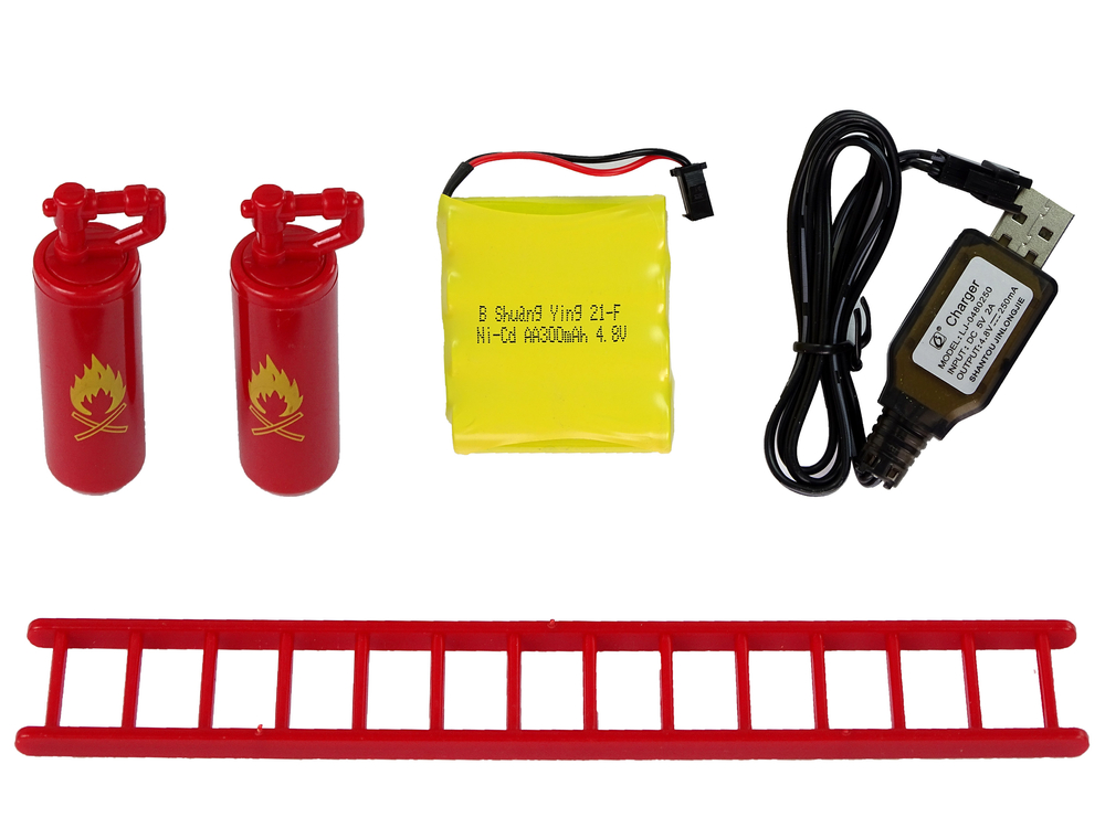Wóz strażacki zasilana jest baterią 4,8V 300 mAh, w zestawie. Do pilota należy użyć 2 baterii „AA” 1,5 V (brak w zestawie). Zabawka przeznaczona jest dla dzieci powyżej 6 roku życia. Zestaw posiada certyfikat CE i jest zgodny z normą EN 71. Zapakowany jest w kartonik z przezroczystą witrynką, dzięki czemu nadaje się idealnie na prezent.