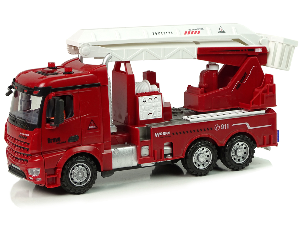 Zdalnie sterowany wóz strażacki to realistycznie odwzorowany model. Na tyle znajduje się duża biała drabina, która ma wysokość aż 58 cm. Teraz mały strażak może dostać się na najwyższe piętro i ugasić duży pożar. Pilot ma częstotliwość 2.4 Ghz. Obsługa pilota R/C jest bardzo prosta, a pilot wygodnie układa się w dłoni. Z jego pomocą operator wozu może kierować nim, zmieniając kierunki jazdy na przód/tył i prawo/lewo.