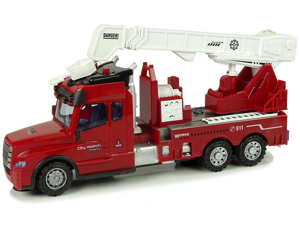 Zdalnie sterowany wóz strażacki to realistycznie odwzorowany model. Na tyle znajduje się długi dźwig, która ma wysokość aż 34 cm, dodatkowo jeszcze ma wysuwane ramię do 10 cm, co dodatkowo wydłuża zasięg. Pokrętło po prawej stronie wóz opuszcza hak na lince. Teraz mały strażak może dostać się w każe miejsce, ugasić duży pożar bądź przenieść rzecz z miejsca na miejsce. Pilot ma częstotliwość 2.4 Ghz. Obsługa pilota R/C jest bardzo prosta, a pilot wygodnie układa się w dłoni. Z jego pomocą operator wozu może kierować nim, zmieniając kierunki jazdy na przód/tył i prawo/lewo.