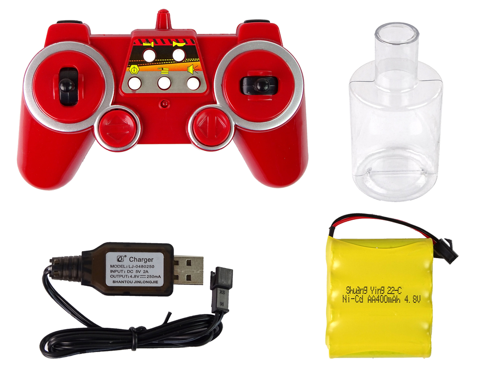 Wóz strażacki zasilana jest baterią 4,8V 400 mAh, w zestawie. Do pilota należy użyć 2 baterii „AA” 1,5 V (brak w zestawie). Zabawka przeznaczona jest dla dzieci powyżej 6 roku życia. Zestaw posiada certyfikat CE i jest zgodny z normą EN 71. Zapakowany jest w kartonik z przezroczystą witrynką, dzięki czemu nadaje się idealnie na prezent.