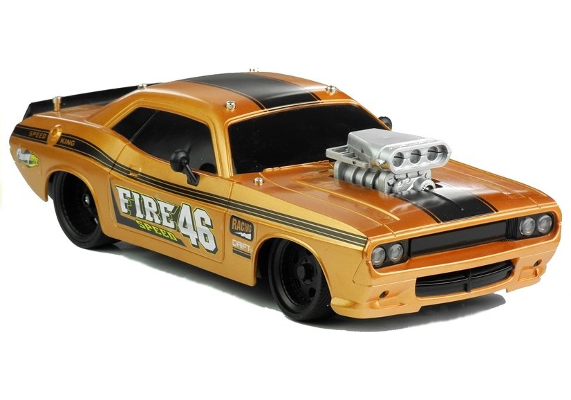 Zdalnie sterowany samochód w pomarańczowo-złotym kolorze z czarnymi detalami wzorowany jest na klasycznym Dodge Challengerze. Model został zaprojektowany i stworzony w skali 1:16, dzięki czemu zachowano jego charakterystyczne elementy, co sprawia, że wygląda niesamowicie realnie. Podrasowane auto sportowe rodem z amerykańskich dróg z pewnością spełni marzenie każdego młodego pasjonata motoryzacji. Zabawa z wykorzystaniem zdalnie sterowanego pojazdu R/C wpłynie na prawidłowy rozwój dziecka — wzmocni jego koncentrację, a także rozwinie logiczne myślenie i szeroko pojęte zdolności manualne, spryt i zwinność.