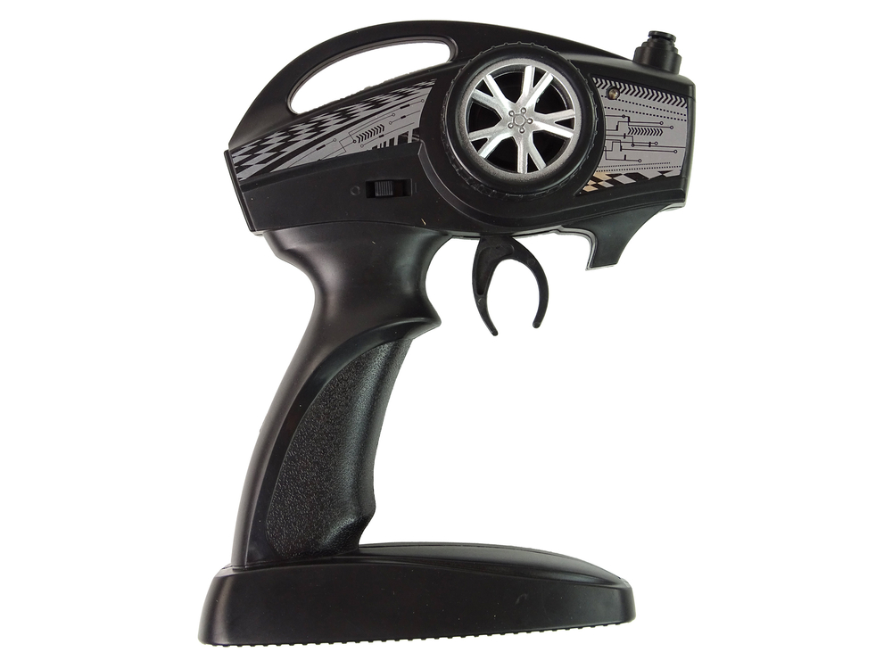 W zestawie znajdziesz mały śrubokręt, który umożliwi załączenie dołączonego akumulatora 3.7V do auta. Dodatkowo, kabel do ładowania akumulatora pozwoli na długą zabawę. Pilot o wymiarach 15 cm x 18 cm x 6 cm (działający na baterie 2x 1.5V – brak w zestawie) zapewnia pełną kontrolę. Autko rusza na wskazanie pilota (przód, tył), a pokrętło w kształcie opony na pilocie pozwoli na precyzyjne manewrowanie w lewo i prawo.