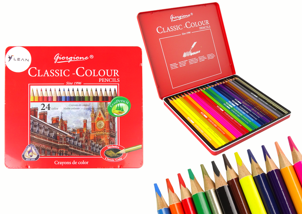 Zestaw 24 Kredek Artystycznych Metalowy Pojemnik