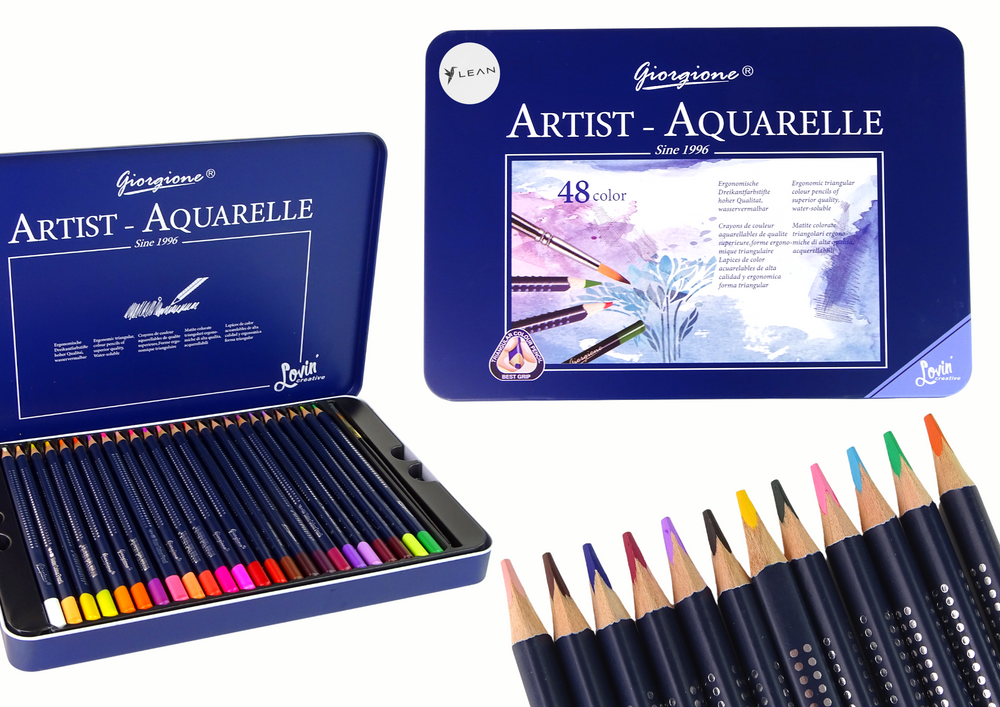 Zestaw 48 Kredek Akwarelowych Metalowy Pojemnik