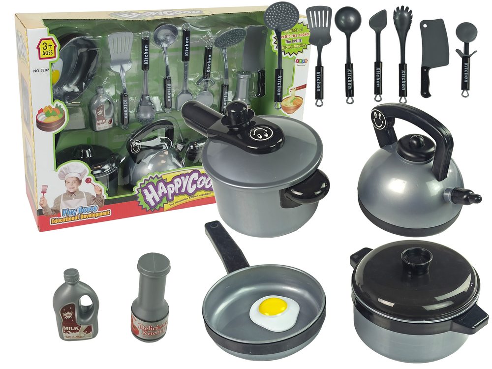 Zestaw Akcesoriów Kuchennych Dla Dzieci Garnki Czajnik Sztućce Srebrne