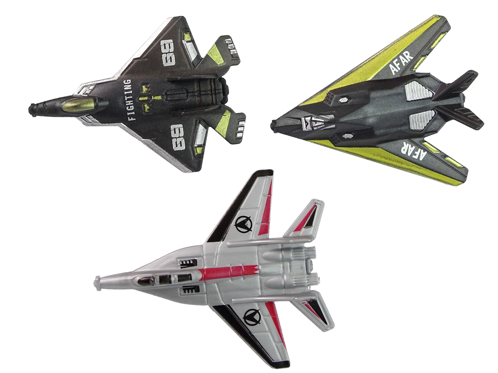 Odrzutowce mają charakterystyczne oznaczenie w wojskowych barwach. Podczas wojny mogą kontrolować sytuację z powietrza. Łódź podwodna ma zamontowane kółka, co ułatwia poruszanie nią po podłodze. Drugą jej zaletą jest wyrzutnia bomb, działa ja zwykły pistolet. Od góry ładujesz pocisk, pociągasz do siebie koniec łodzi podwodnej i strzał! Bomba wystrzela z dzioba statku, rozbijając przeciwnika.