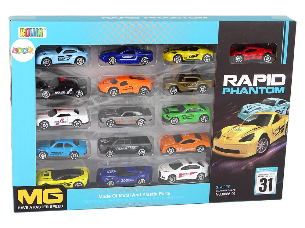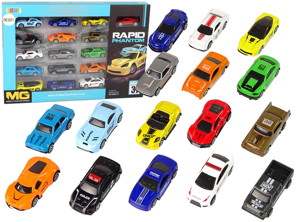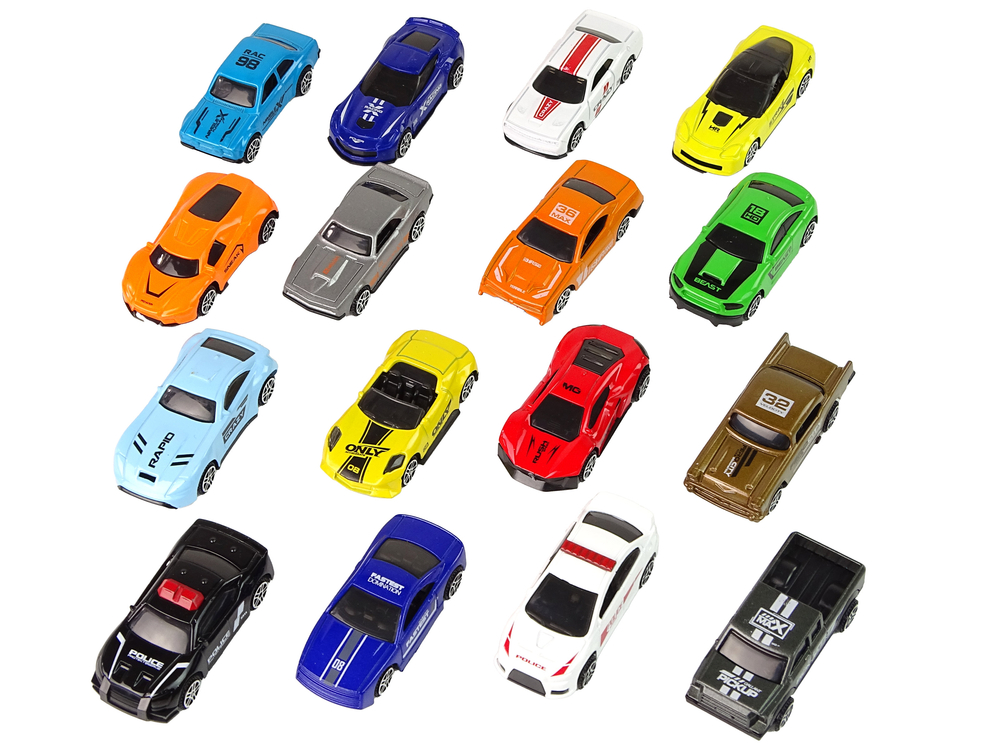 Każde autko ma wyjątkowy wygląd i charakterystyczne naklejki, wykonany ze szczegółem i dokładnością. W zestawie znajduje się 16 autek. Poszerzą kolekcję lub rozpoczną nowy zbiór zabawek.