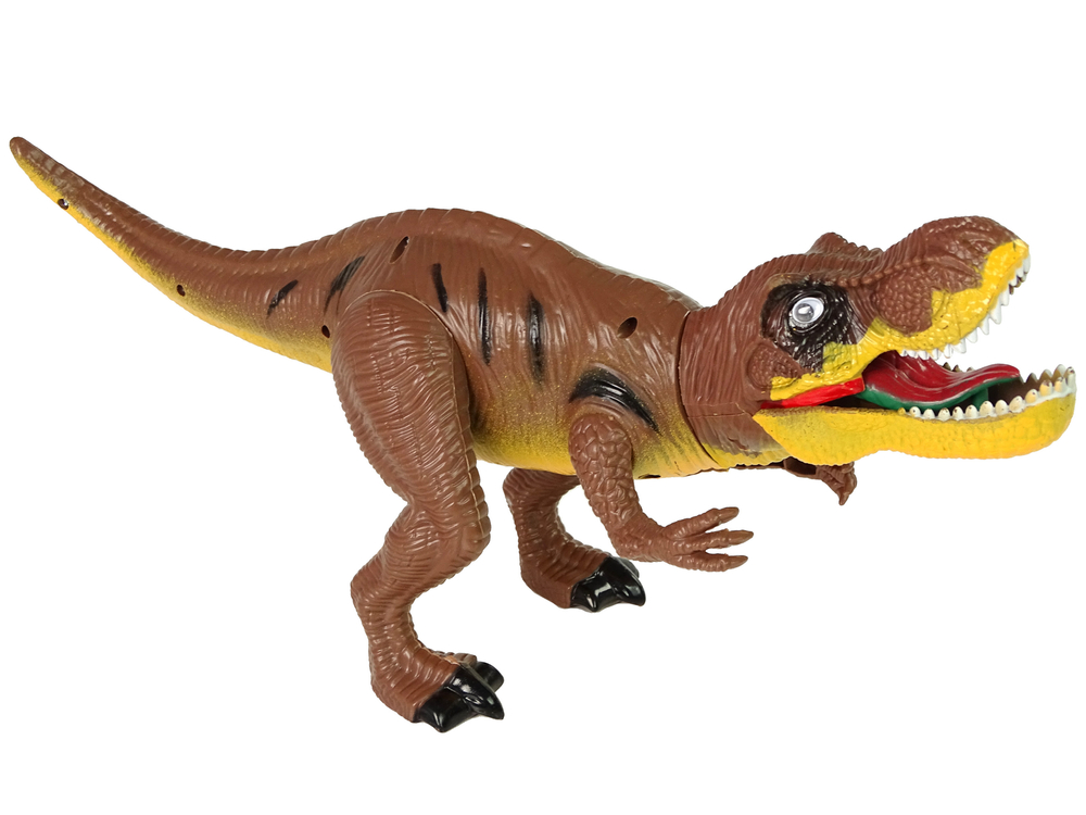 Największy dinozaur Tyranozaur Rex wydaje odgłosy ryczenia, a z paszczy można zauważyć czerwone światło, co potęguje te niecodzienne wrażenia. Funkcje uruchamia się to poprzez pociągnięcie za lewą rękę w dół. Jego umaszczenie to odcienie brązowego. Dodatkowo w zestawie znajdują się jego mniejsi towarzysze, drzewa oraz gniazdo dla dinozaurów. Maluch może tworzyć różne scenariusze zabaw oraz stworzyć własny park dla dinozaurów.