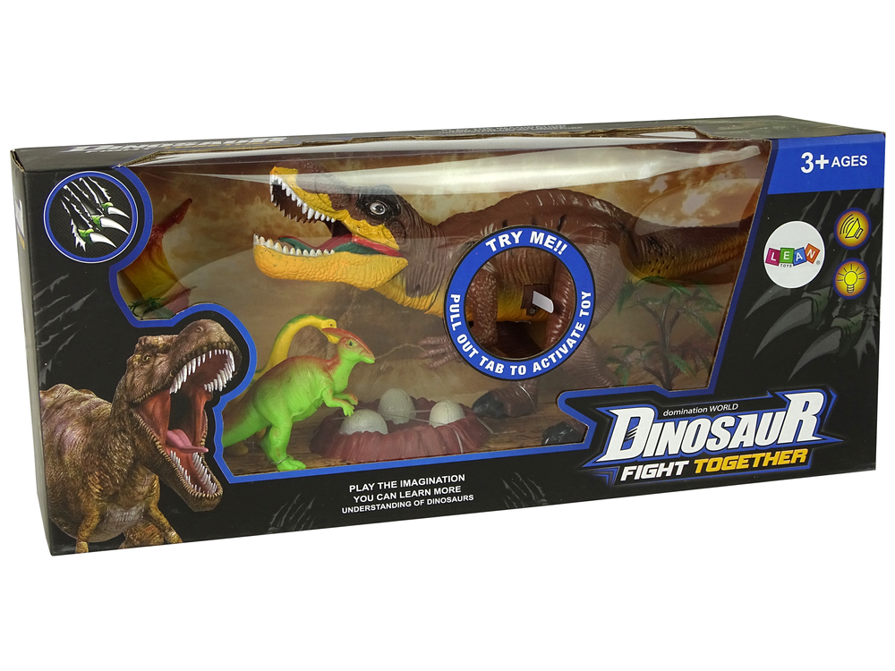 Zestaw Dinozaurów Tyranozaur Rex Drzewka Akcesoria Dźwięk Światła