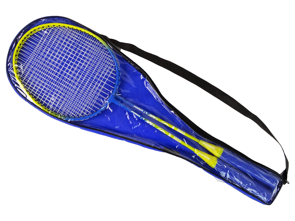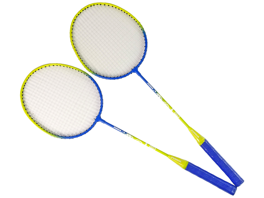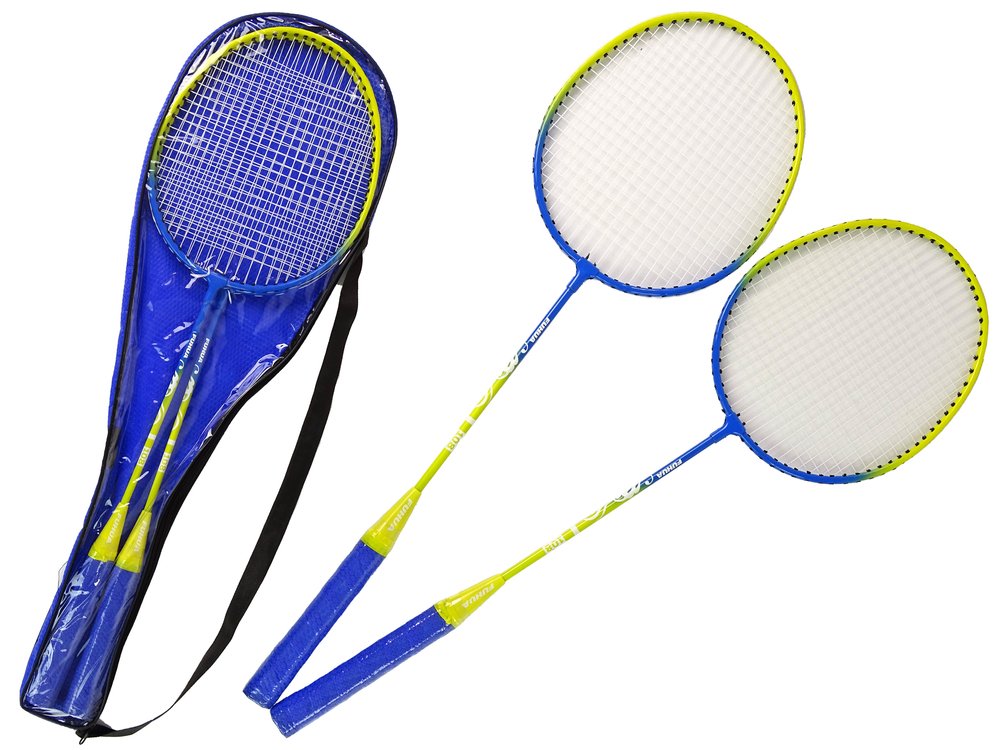 Odkryj nasz zestaw 2 metalowych paletek do badmintona w kolorze żółto-niebieskim. Przyjemne uchwyty o wymiarach 16 cm x 2 cm x 2,5 cm zapewniają wygodę podczas gry. Ponadto uchwyty są osłonięte plastikową folią, co wydłuża czas użytkowania. Paletki mają rozmiar 65 cm x 20 cm.